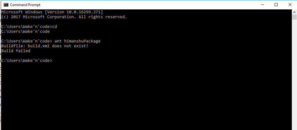 and then execute the command we specify in our ANt.buid.xml file . so i execute ant himanshuPackage command here as i specify this command in our file earlier.